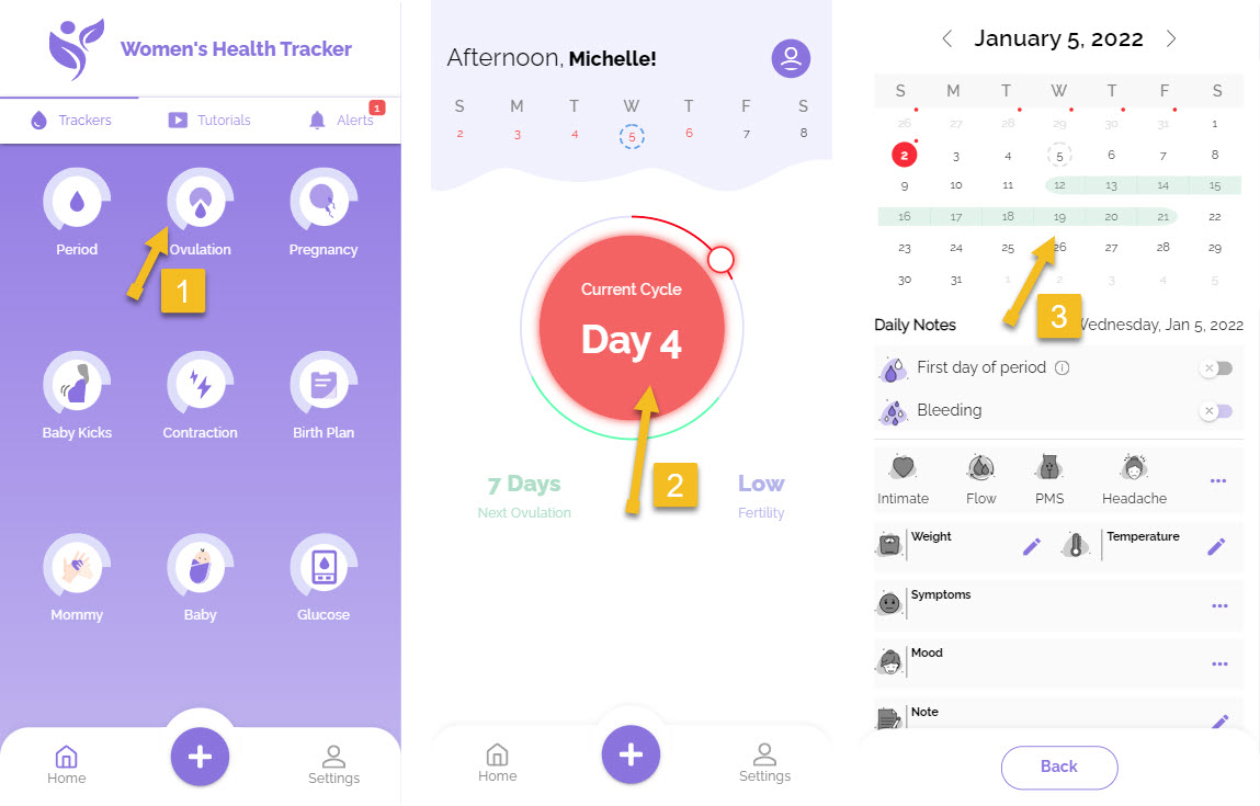 To set up a period and view your ovulation/fertile days, do the following.